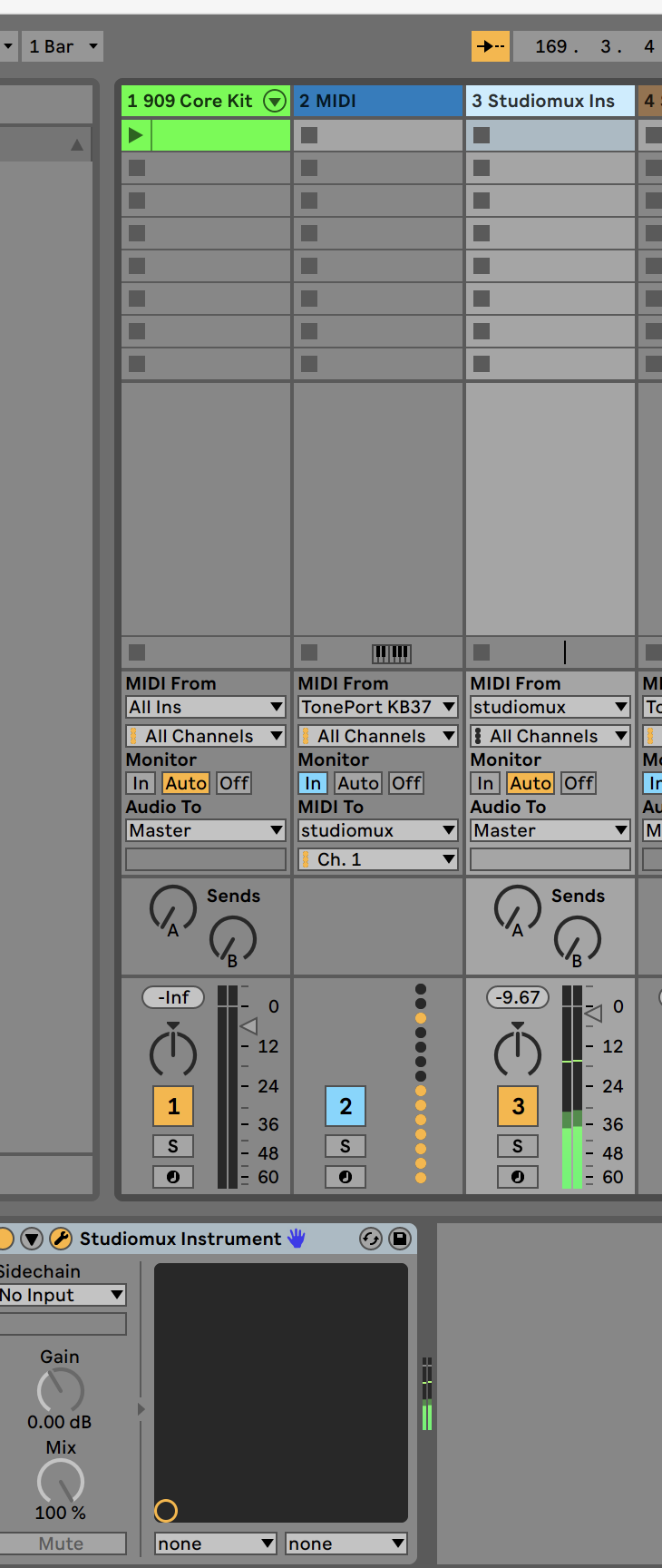 Yesterday I had āremoteā midi devices from my desktop showing up in Studiomux, not today, but they werenāt working anyway so not too much lost there. Iāve just successfully routed midi from Live though (following @Vaultnaemsae advice to add a midi sender strip as well as the VST instrument channel). Screenshot attached. In the Live āMIDI toā box on y Channel 2 Iāve selected āStudiomuxā, though I can also send to āAUMā. I can then select āStudiomuxā or āAUMā as virtual inputs in AUM to control my hosted plugins. The midi input on the VST channel 3 doesnāt need to be āstudiomuxā (itās not doing anything), thatās just a remnant from my experiments.