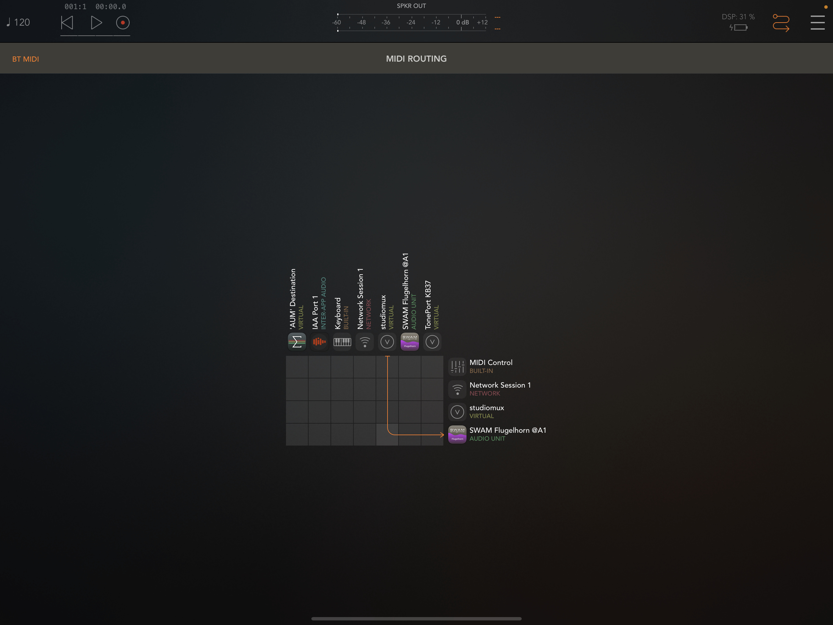 Are you able to route midi from Ableton to studiomux iPad, have some midi arp (StepPolyArp) and send midi back? I am interested in midi only.